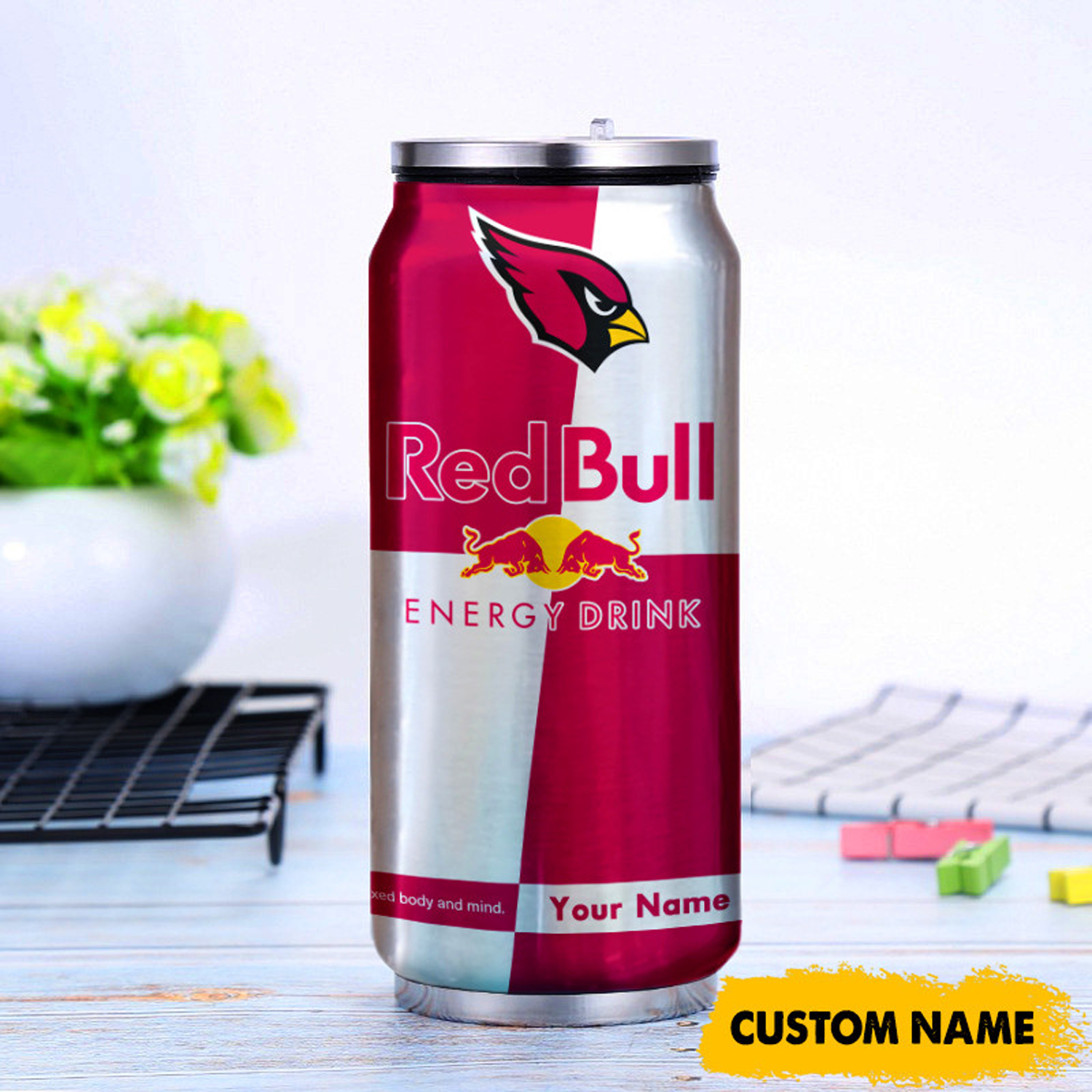 ARI x NFL Mix RedB Drink Can Tumbler Custom Any Name DATND TANTD