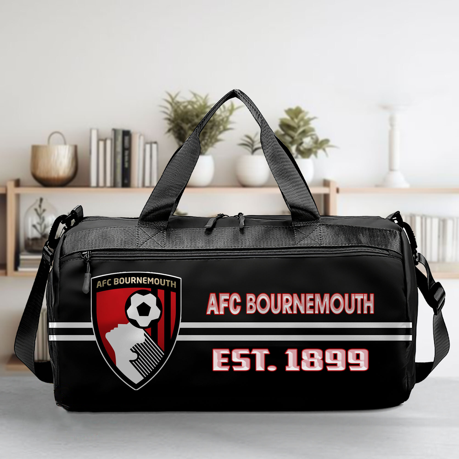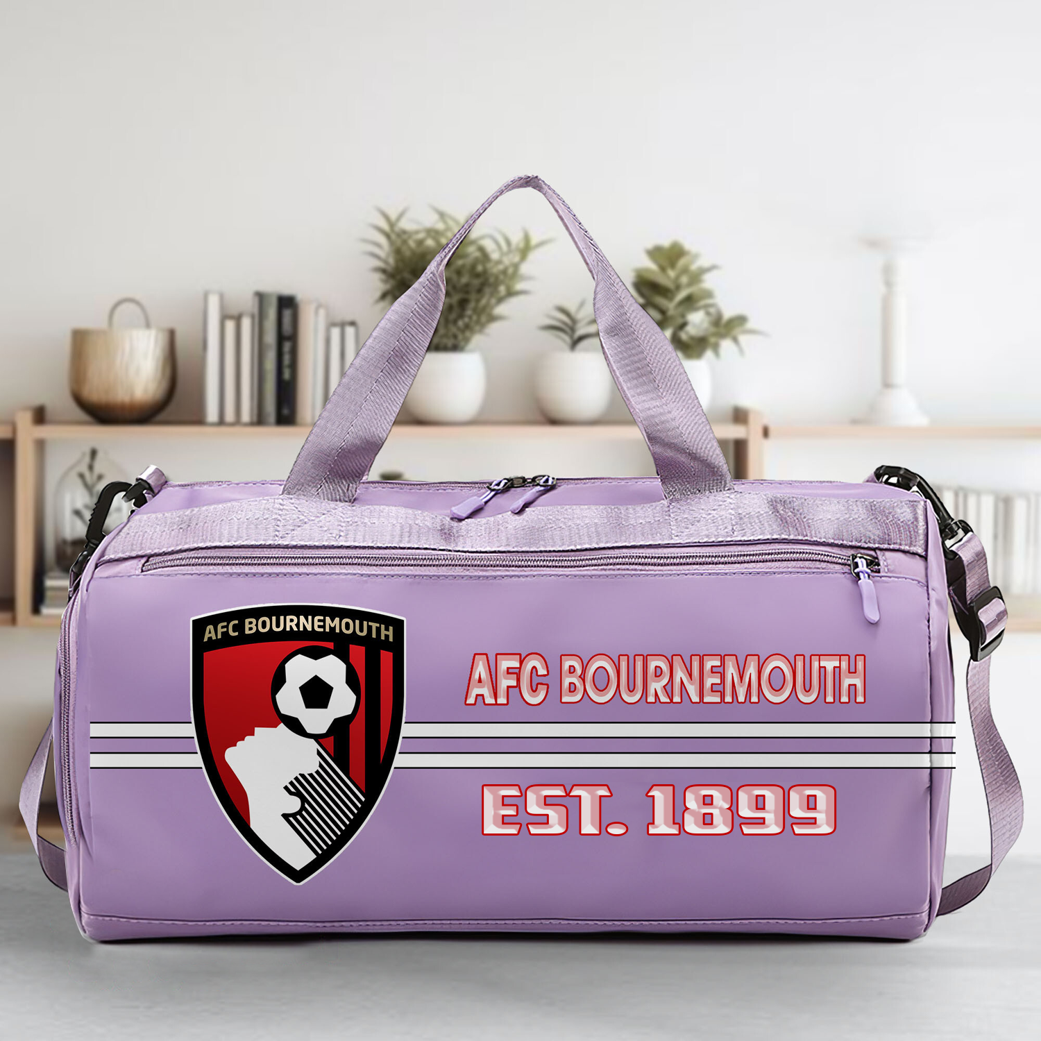 - The duffle bag is designed with a sturdy handle, prominent printed logo, high-quality zipper, delicate seams.