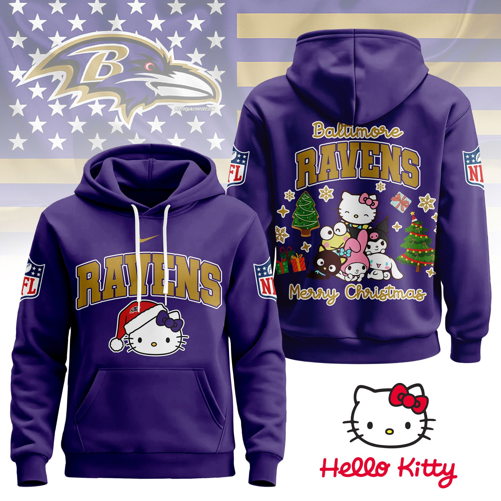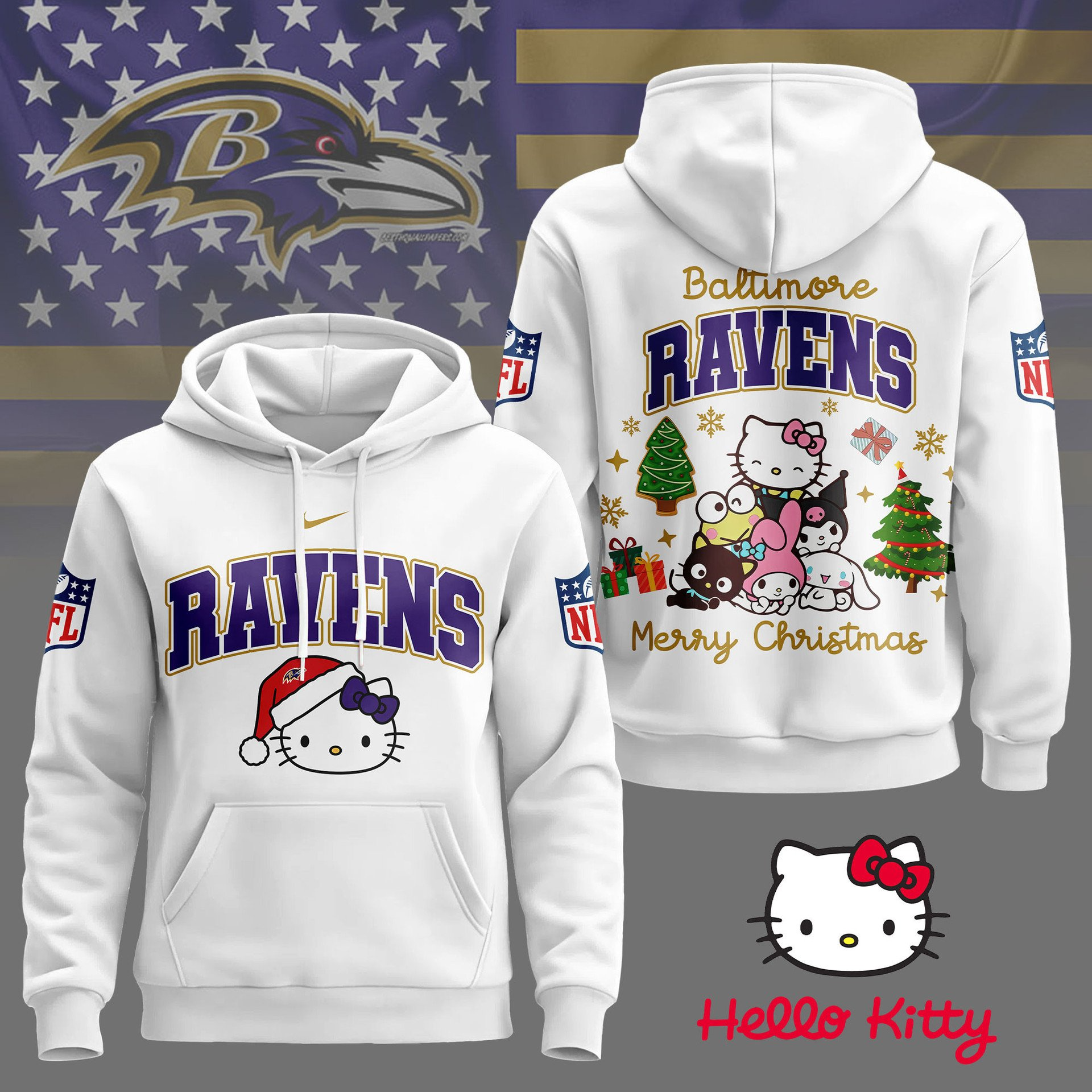 BR Premium NFL Hello Kitty Christmas 3D Hoodie DDT CTND