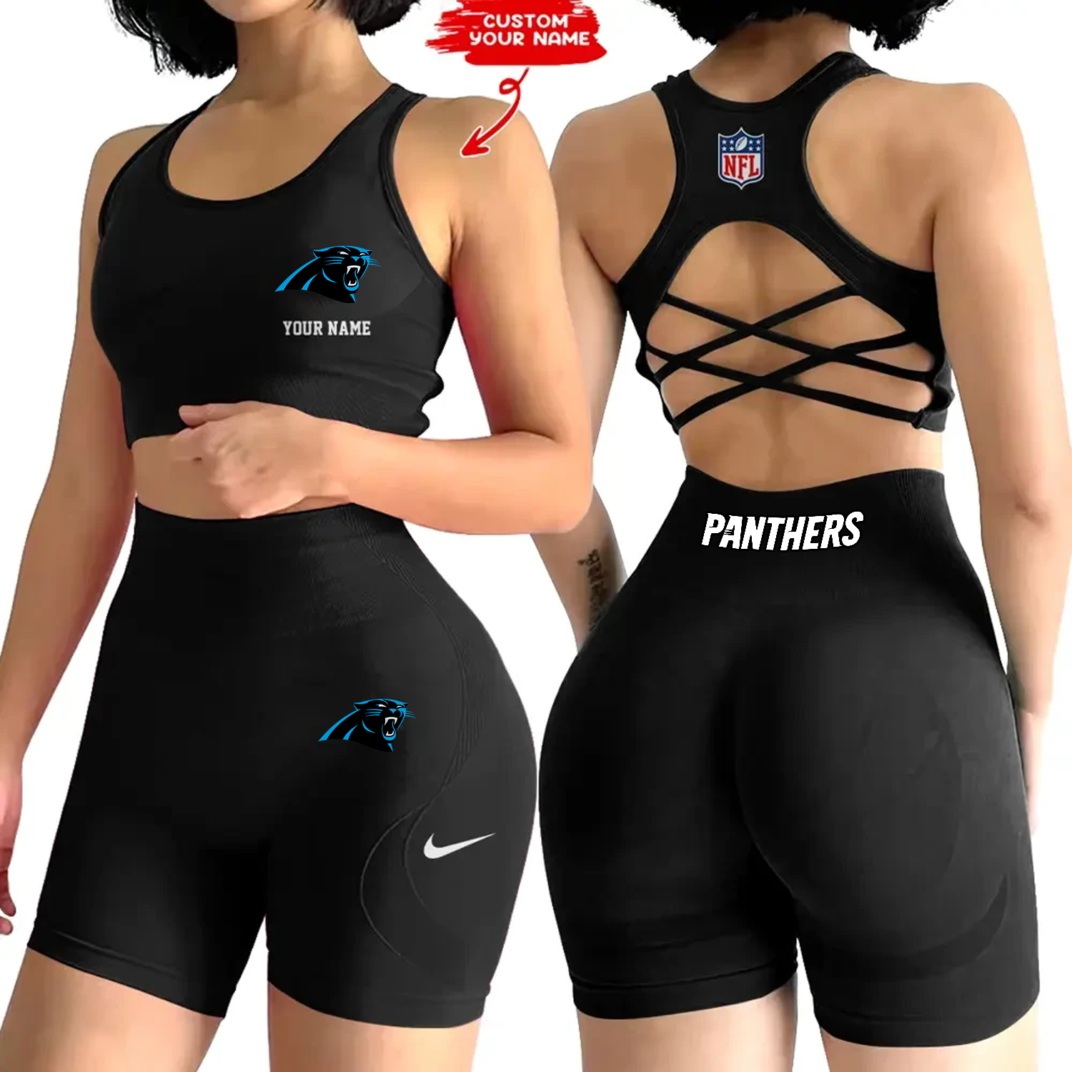 CAR x NFL 2-PCS Women's Seamless Yoga Set Sexy Sport Bra High Waist Sports Shorts DATND TANTD