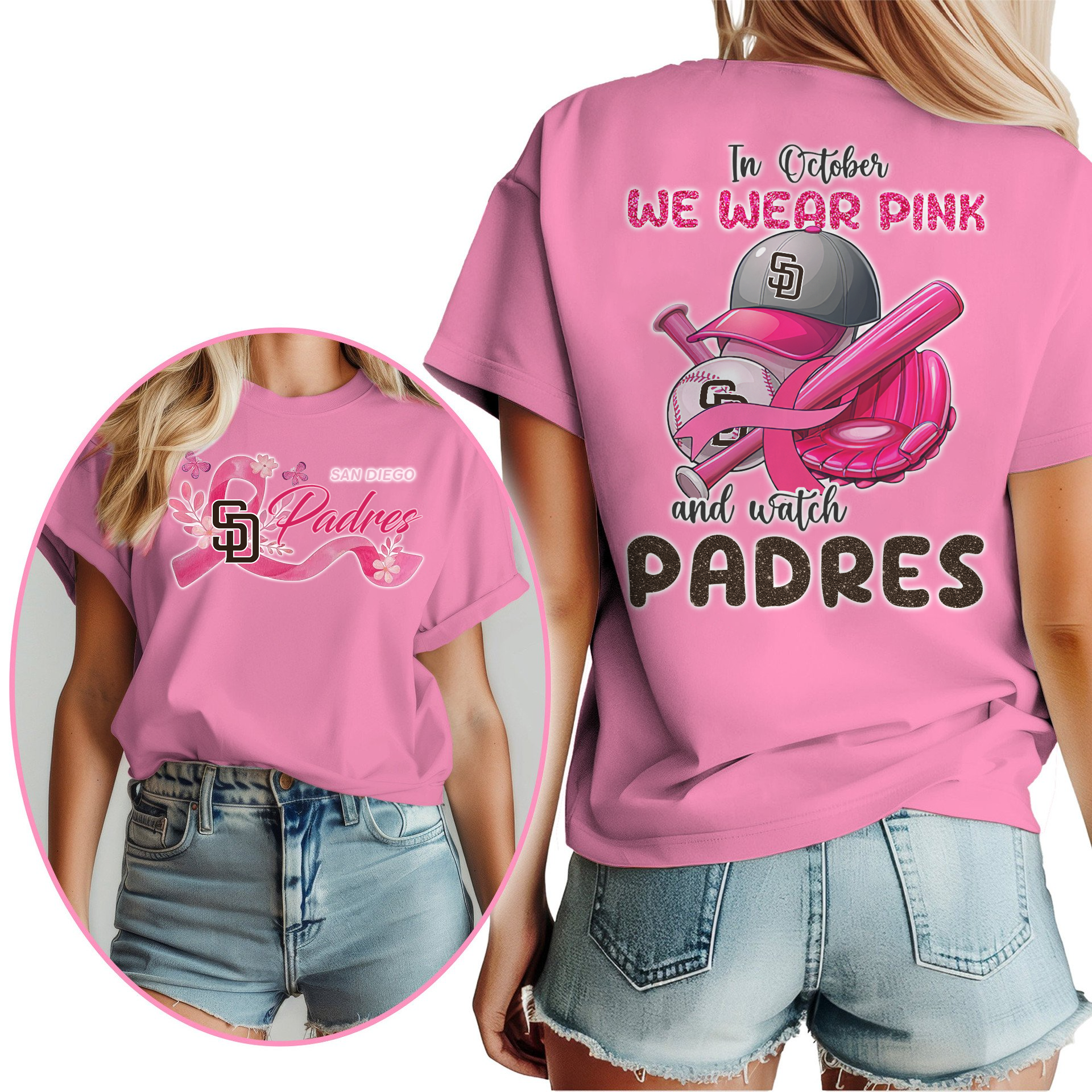 In October We Wear Pink And Watch MLB SDP Shirt DDT NTL