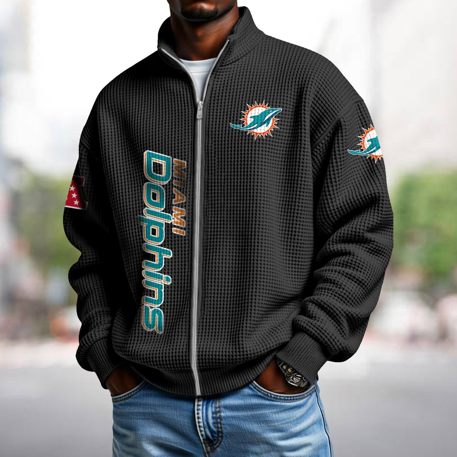MIA x NFL Waffle Zip-Up Sweatshirt DATND TANTD