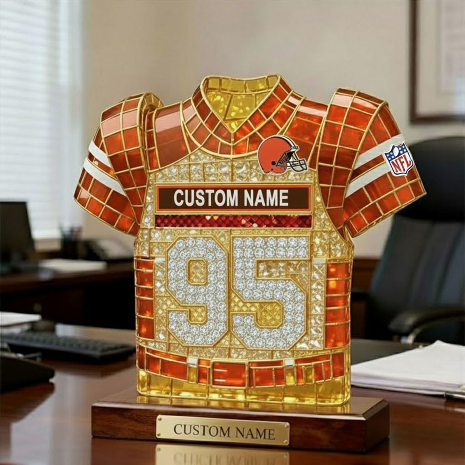 Crafted from high-quality acrylic ???? perfect for decoration, collection, or gifting to any true Cleveland fan - This personalized NFL logo themed colored crystal figurine symbolizes strength and freedom, perfectly capturing the majestic scene of an eagle soaring through the sky. With its piercing gaze and resolute stance, the eagle represents courage and strength. Whether displayed on a desk, in the office, or as a special gift, it creates a striking visual element, inspiring strength and inspiration.