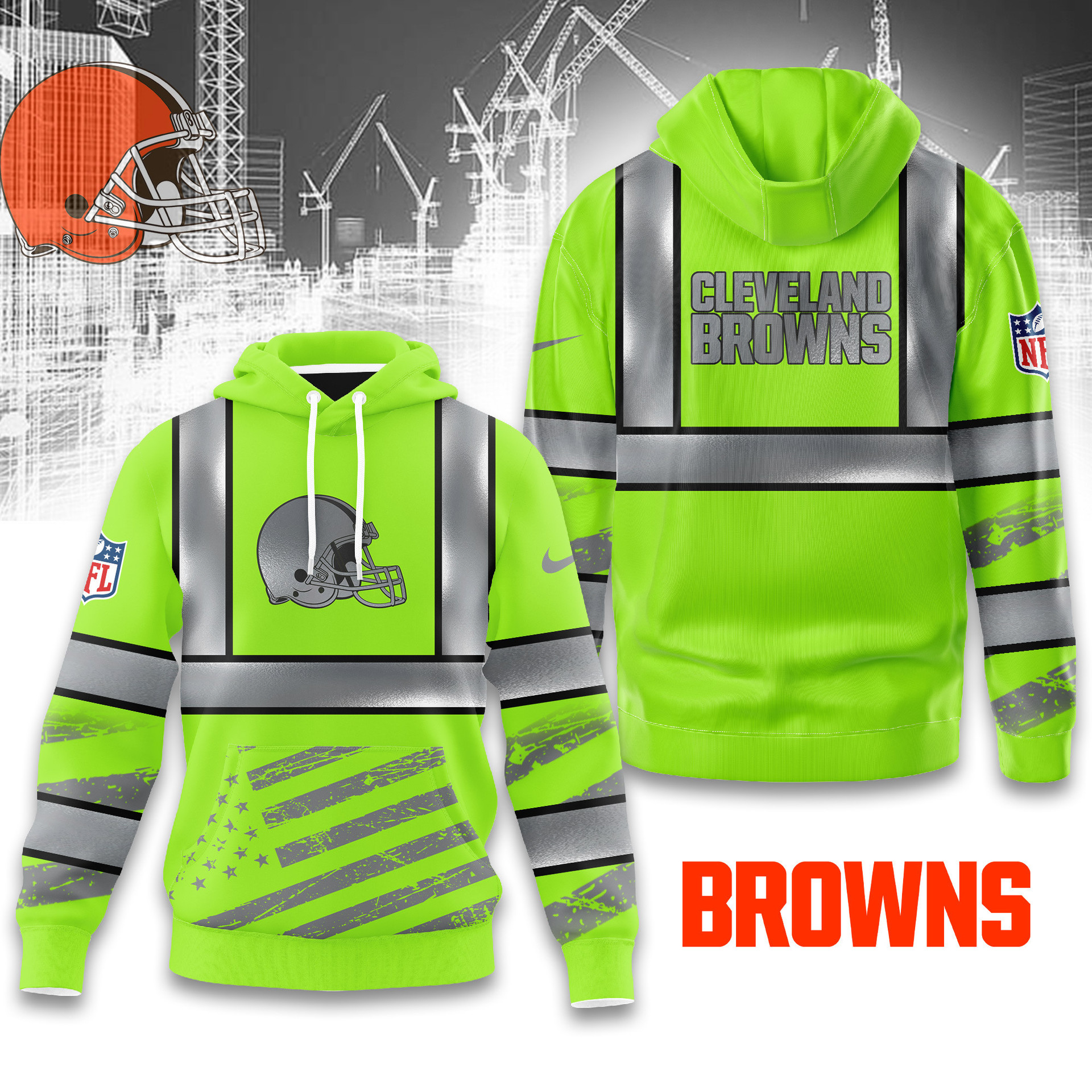 Premium NFL CLE Safety Hi-Vis Hoodie V1 NMD TTV