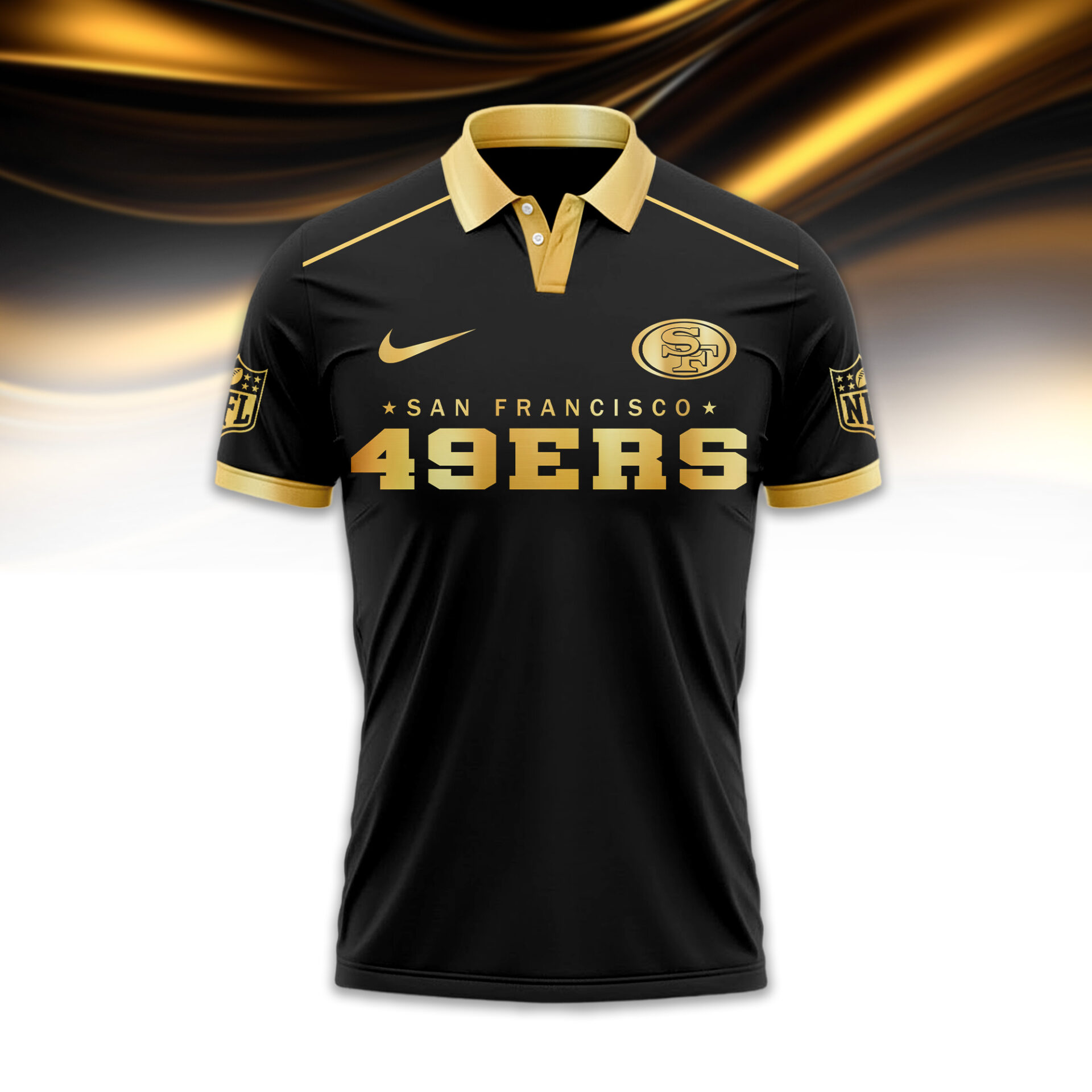 SF49 Premium NFL Black And Gold Custom Polo DDT CTND